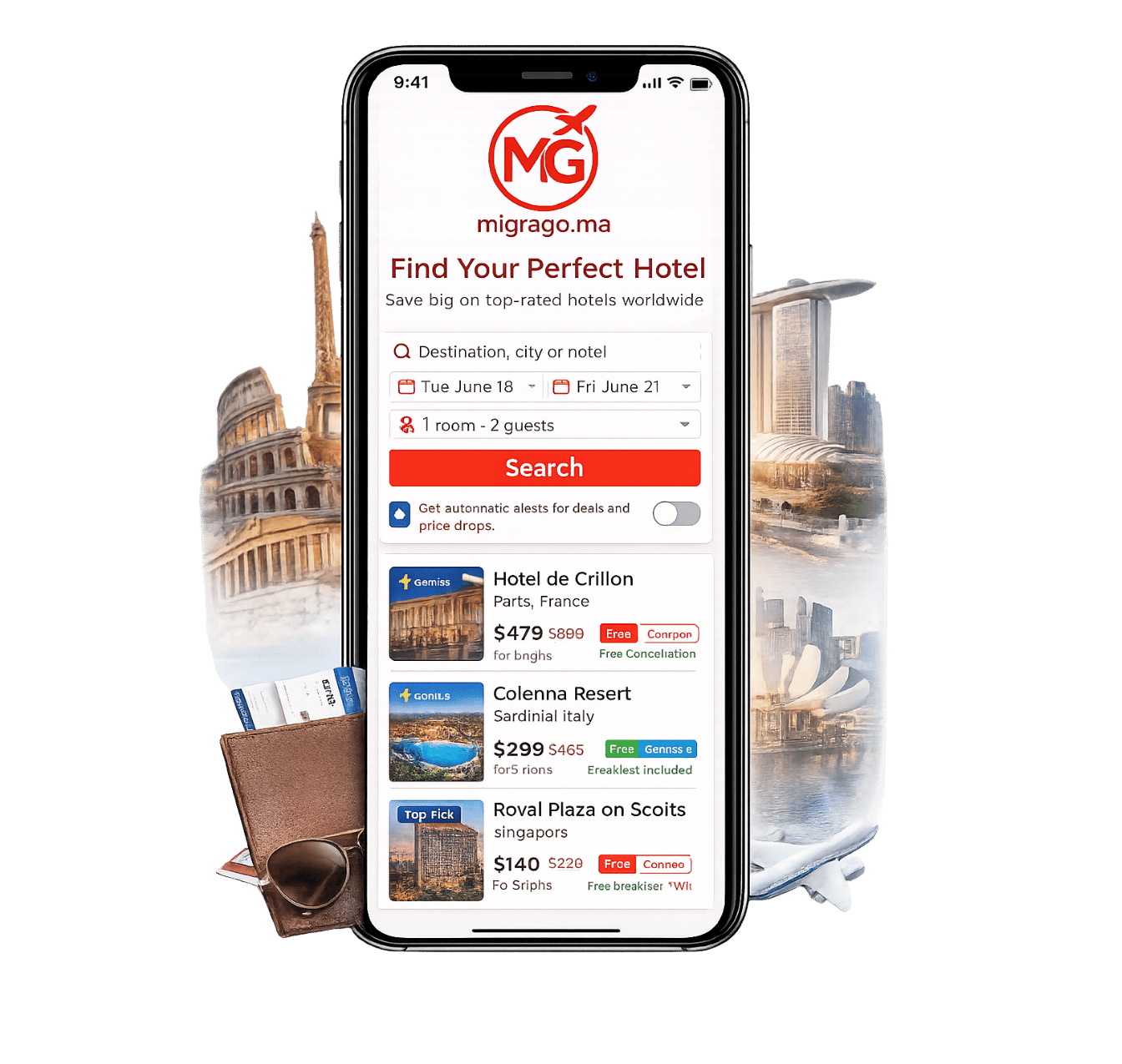 يمكنك حجز الفندق بسهولة عبر MIGRAGO من خلال اختيار وجهة السفر، تاريخ الوصول والمغادرة، وعدد الأشخاص. نعرض لك أفضل خيارات الفنادق المتاحة حسب ميزانيتك وتفضيلاتك.