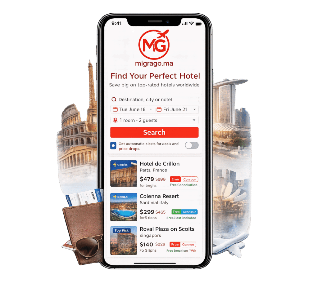 يوفّر MIGRAGO مجموعة واسعة من أماكن الإقامة، تشمل فنادق فاخرة، فنادق اقتصادية، شقق فندقية، ونُزل، لتناسب مختلف الأذواق وميزانيات السفر.